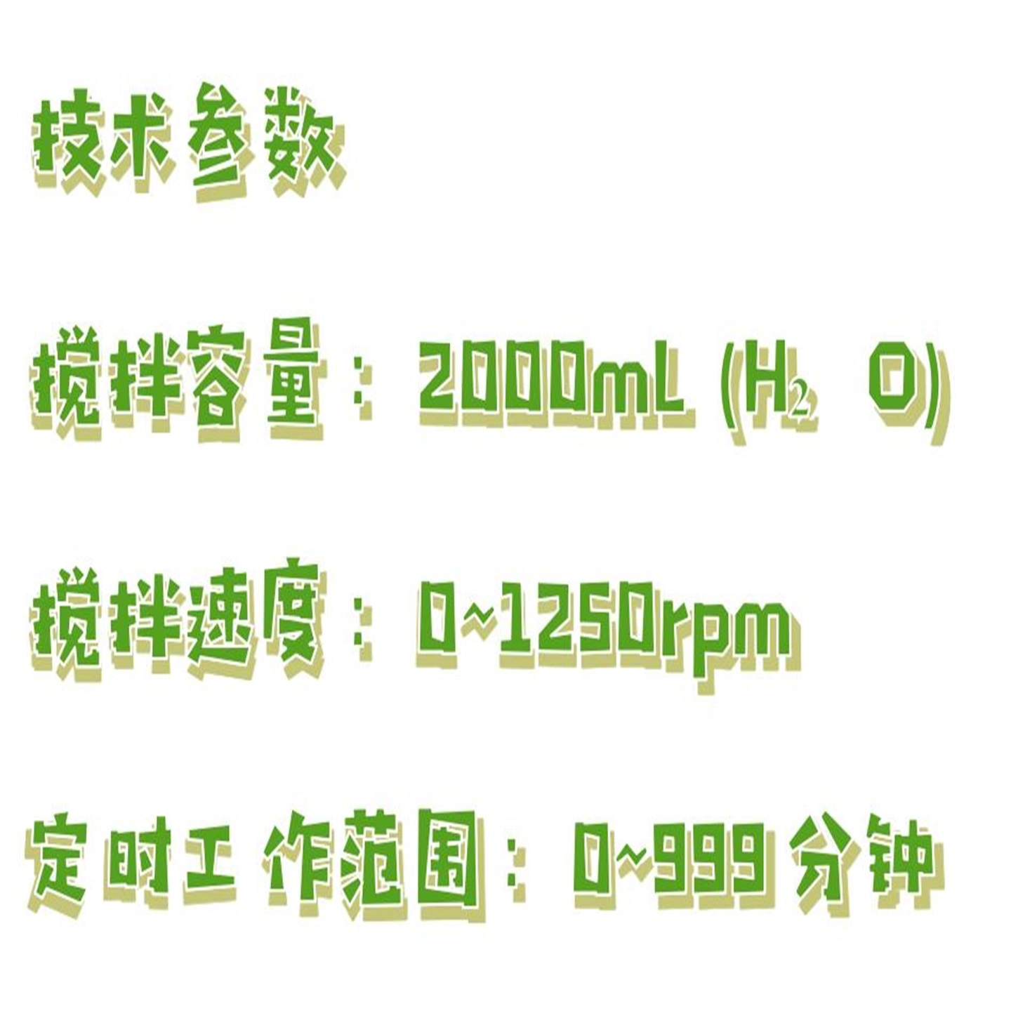 数显磁力搅拌器报价数显磁力搅拌器报价 型号:HT32-MS200库号:M409999 功能特征:• 定时磁力搅拌器, 采用按键方式控制电机转速。• 由慢至快自动增速。• 液晶显示屏, 显示定时与运行状况。 技术参数搅拌容量:2000mL (H₂O) 搅拌速度:0~1250rpm 定时工作范围:0~999分钟 工作面板尺寸:135(长)×135(宽)mm 工作面板材质:不锈钢 显示屏:液晶显示屏 (95×35mm) 电源类型:AC220V/50Hz 环境要求:0~50°C, 相对湿度小于80% 外形尺寸:230(长)×180(宽)×120(高)mm 重量:2kg 定时磁力搅拌器, 采用按键方式控制电机转速。• 由慢至快自动增速。• 液晶显示屏, 显示定时与运行状况定时磁力搅拌器, 采用按键方式控制电机转速。• 由慢至快自动增速。• 液晶显示屏, 显示定时与运行状况定时磁力搅拌器, 采用按键方式控制电机转速。• 由慢至快自动增速。• 液晶显示屏, 显示定时与运行状况定时磁力搅拌器, 采用按键方式控制电机转速。• 由慢至快自动增速。• 液晶显示屏, 显示定时与运行状况定时磁力搅拌器, 采用按键方式控制电机转速。• 由慢至快自动增速。• 液晶显示屏, 显示定时与运行状况